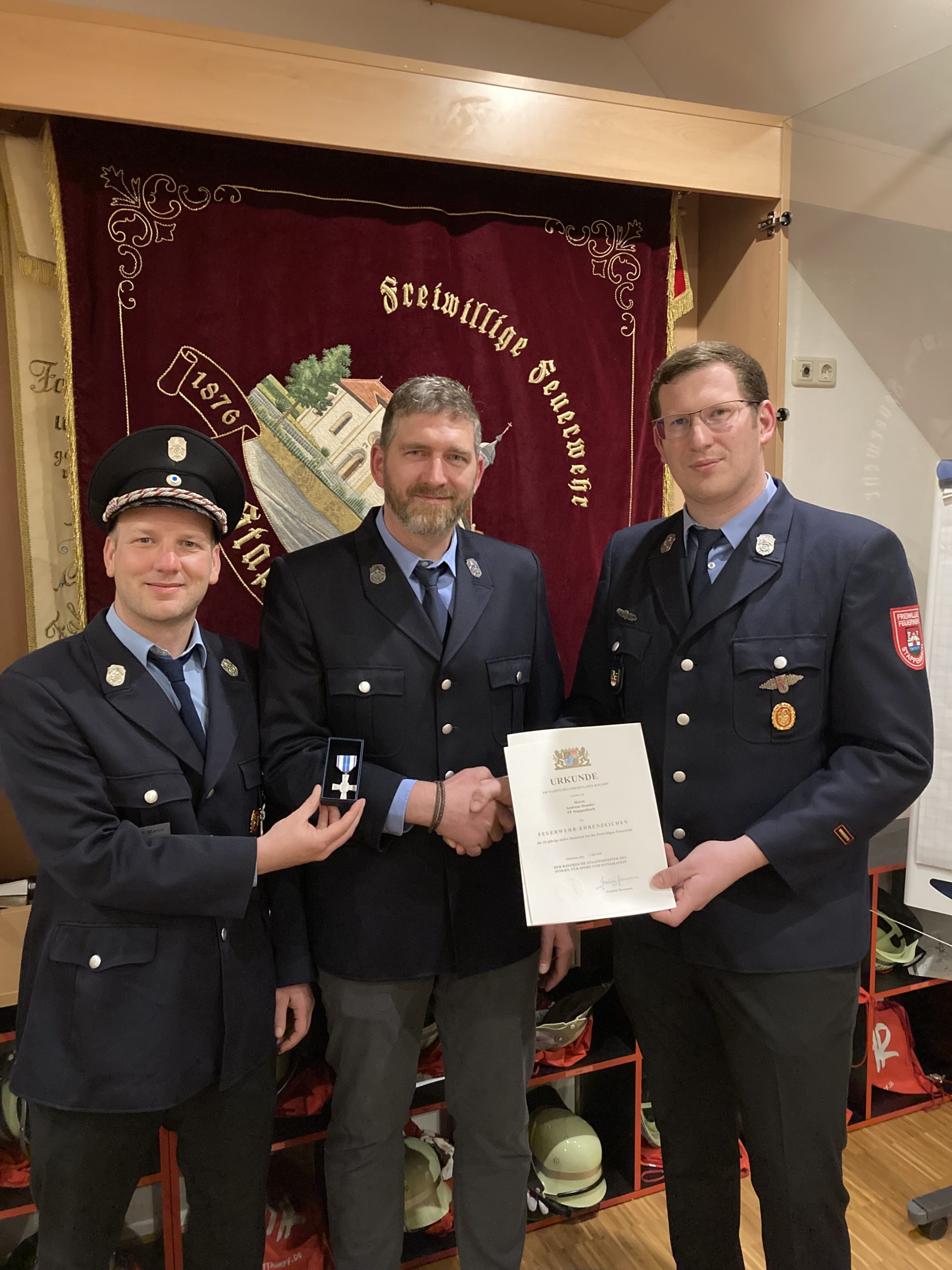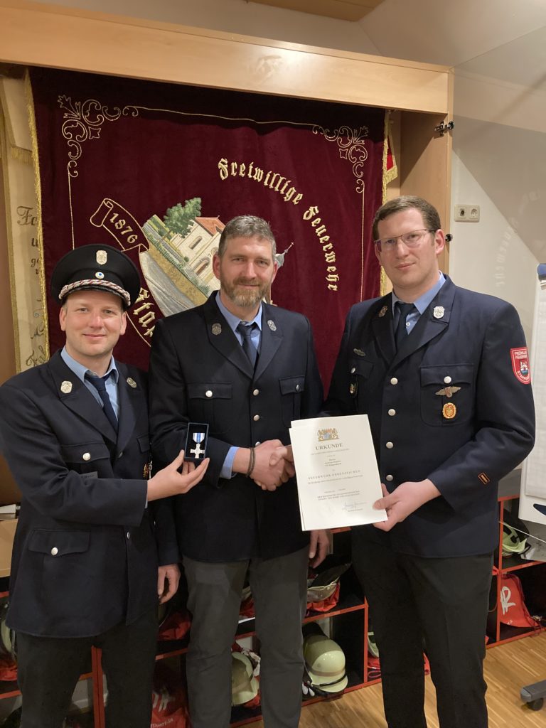 Unter dem Punkt Wünsche/Anträge/Sonstiges gab es Wortmeldungen. So ehrte Kommandant Georg Dreßel Andreas Denzler für 25 Jahre aktiven Dienst.
